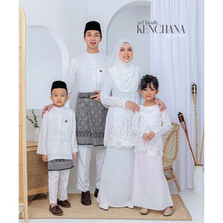 Baju raya sedondon tema warna off white (putih) set family ayah ibu anak baju kurung .